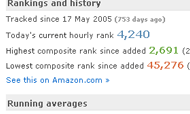 Amazon sales rank tracking. See charts of your sales rank performance, compare your books to similar books, view the current sales rank of items that were purchased by people that also bought your item, export rankings, get a widget, stay current with RSS or email alerts.